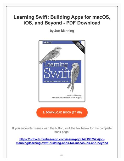 Free Download Learning Swift Building Apps for macOS iOS and Beyond Epub By Click Button. Learning Swift Building Apps for macOS iOS and Beyond it’s easy to recommend a new book category such as Novel, journal, comic, magazin, ect. You see it and you just know that the designer is also an author and understands the challenges involved with having a good book. You can easy klick for detailing book and you can read it online, even you can download it
